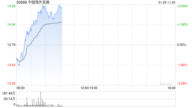 中国海外发展(00688)早盘涨超3%,截至发稿,股价上涨2.76%,现报14.17港元,成交额3.04亿港元。