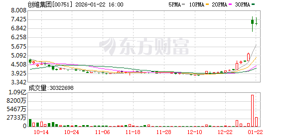 资本市场对这“一拆一退”的资本运作给予热烈回应。1月21日,停牌半个月的创维集团复牌,高开超40%。1月22日,创维集团延续上涨势头,最终报收7.13港元/股,最新市值为135亿港元。