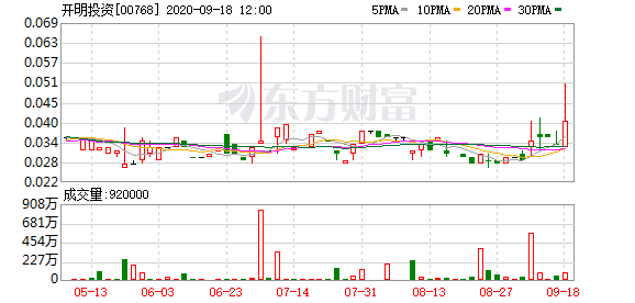 原标题:《异动股》开明(00768)升近52%,报0.05元