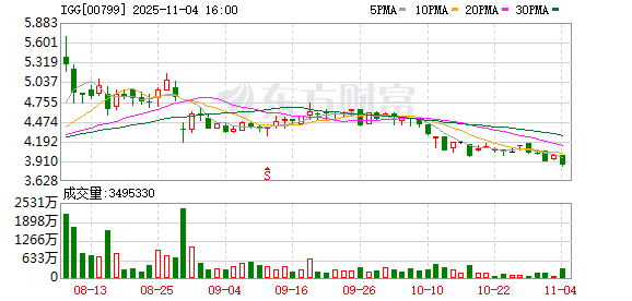 IGG(00799)发布公告,2025年11月4日,公司回购股份14万股,回购金额为54万港元。