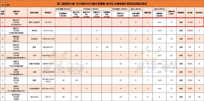 金华站赛道场景极具复杂性,涵盖村庄窄路、商城道闸、人造障碍物、多类动态交互场景及灯控掉头等典型城市高难度路况,对车辆的规划、博弈及控制综合性能要求极高。星纪元ET依托文远知行核心技术全程流畅通行,在关键场景中展现出高度拟人化的决策能力,最终以明显优势登顶,延续了文远知行在智驾大赛中的强势表现。
