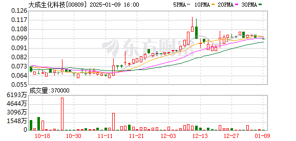 财中社1月9日电大成生化科技(00809)发布公告,2025年1月9日,公司回购股份36万股,回购金额为3.58万港元。根据回购授权的决议,公司可回购的股份总数为8.91亿股,已回购股份3203万股,占回购授权决议通过时已发行股份的0.3596%。