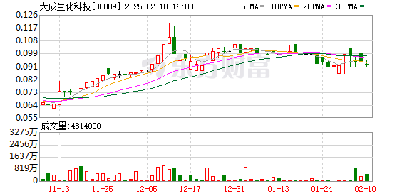 财中社2月10日电大成生化科技(00809)发布公告,2025年2月10日,公司回购股份300万股,回购金额为28万港元。根据回购授权的决议,公司可回购的股份总数为8.91亿股,已回购股份4156万股,占回购授权决议通过时已发行股份的0.4666%。
