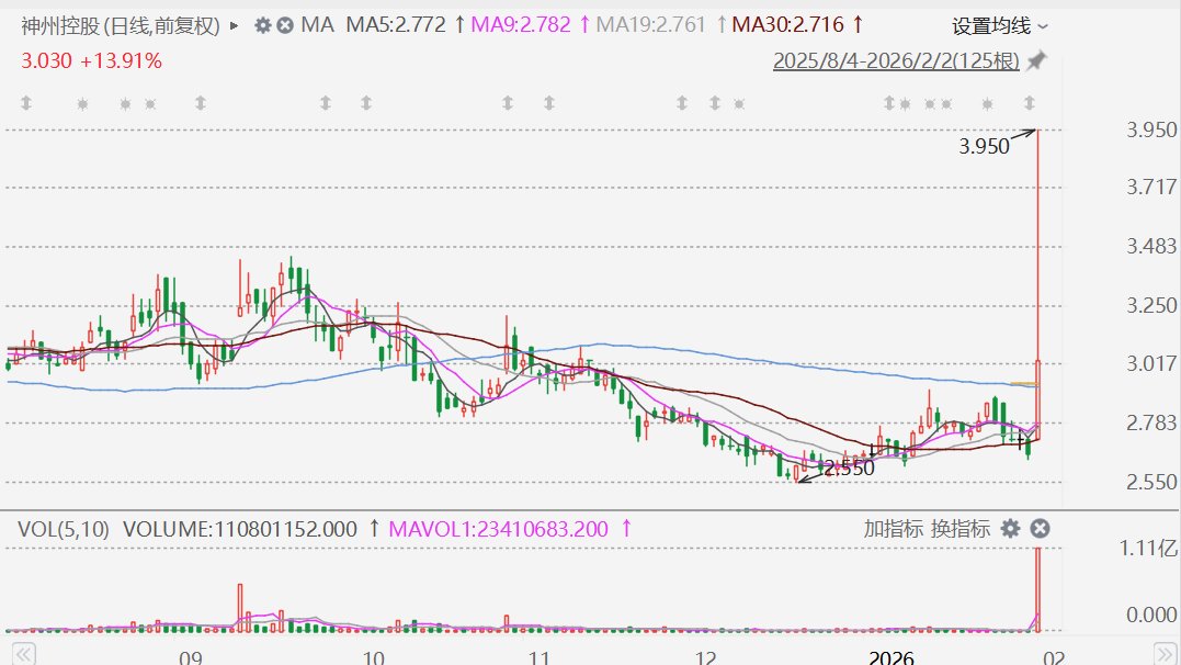 格隆汇2月2日|盘初一度拉升涨超48%的神州控股(0861.HK)目前涨幅收窄至14%,报3.03港元,截至目前成交额放大至3.6亿港元。