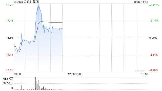 OSL集团(00863)盘中涨超6%,截至发稿,股价上涨1.86%,现报16.96港元,成交额1.20亿港元。
