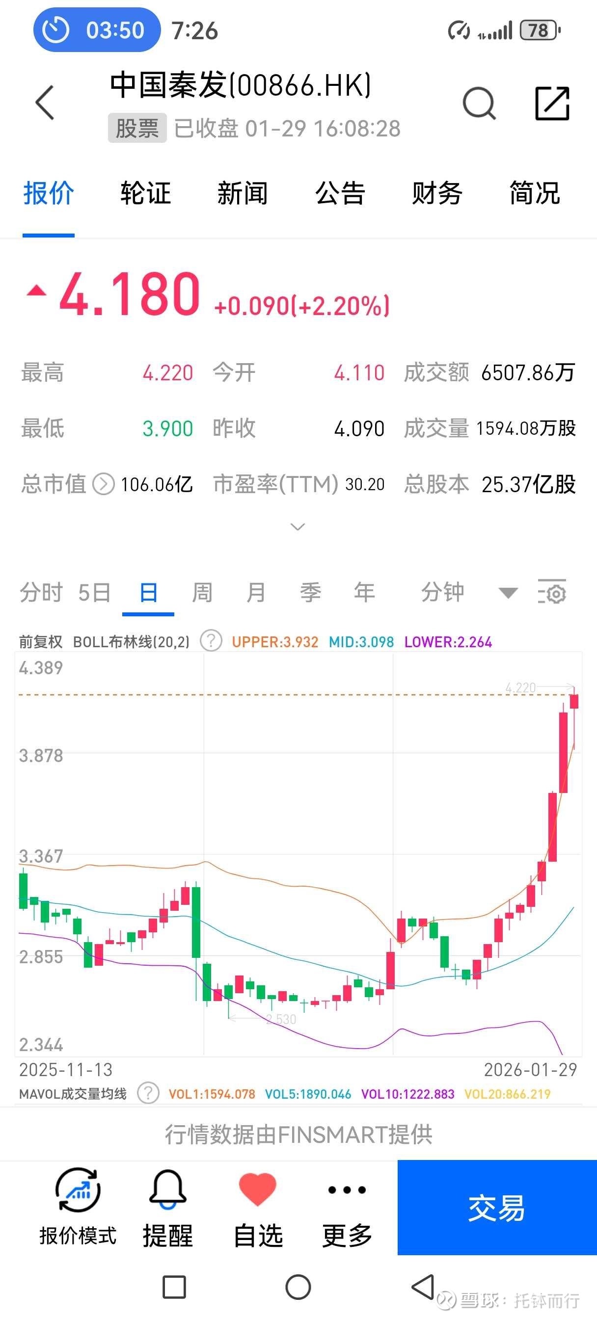真可惜前段时间想买耐何不是港股通,错过了