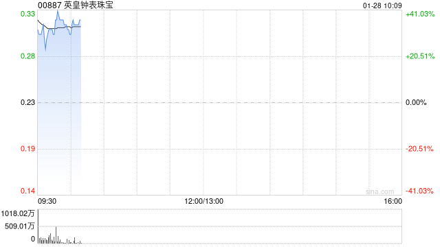 英皇钟表珠宝(00887)盘中大涨超36%,截至发稿,股价上涨34.62%,现报0.315港元,成交额1619.97万港元。