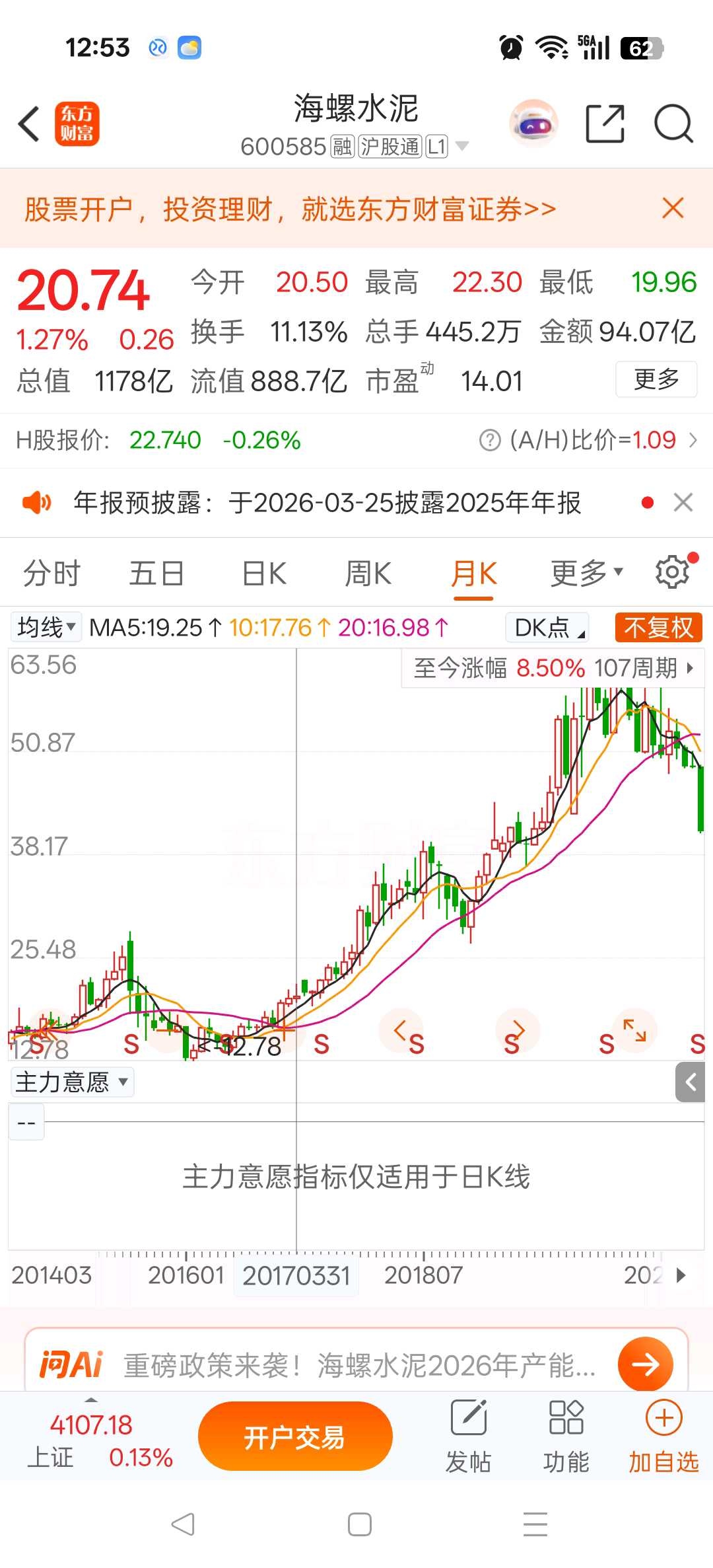 合适时间其实买的就是海螺水泥,实际上海螺水泥目前最好不要涨,海螺目前低估了,已经到了右侧阶段了