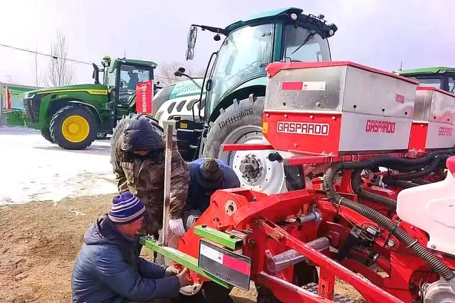 ▲图为北大荒集团农机整备现场