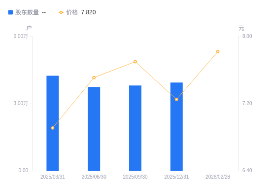 3月25日消息,数据显示,截至2025年12月31日,新天绿能A股股东总户数为3.94万户,较上期(2025年9月30日)增加1346户,增幅3.53%。公司最新A股总股本为23.67亿股,其中流通A股23.48亿股,户均持有流通A股数量为5.95万股,较上期减少2103.61股,降幅3.41%;户均持流通A股市值43.16万元,较上期减少4.3万元,降幅9.06%。