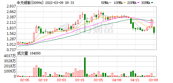 格隆汇3月9日丨中天顺联(0994.HK)复牌低开16.3%报1.9港元,最新市值14.46亿港元。
