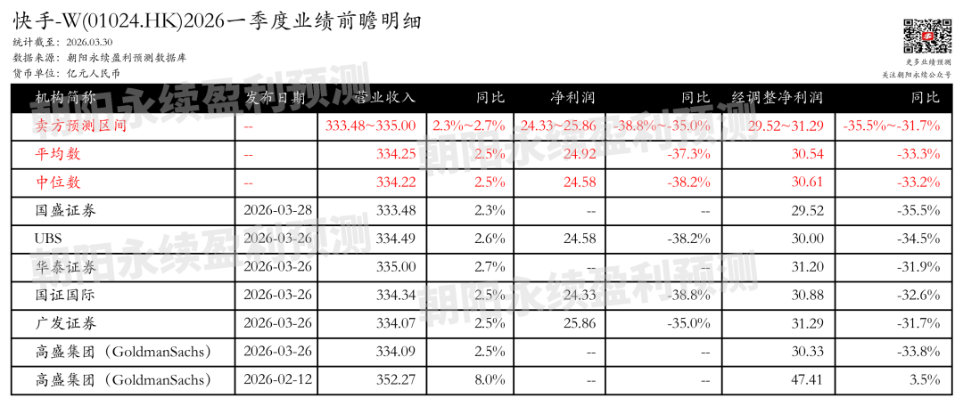 截至2026年03月30日,根据朝阳永续季度业绩前瞻数据: