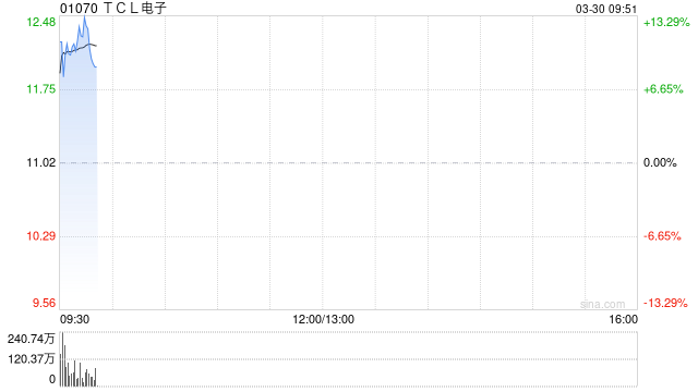TCL电子(01070)绩后大涨超10%,截至发稿,股价上涨12.34%,现报12.38港元,成交额1.2亿港元。