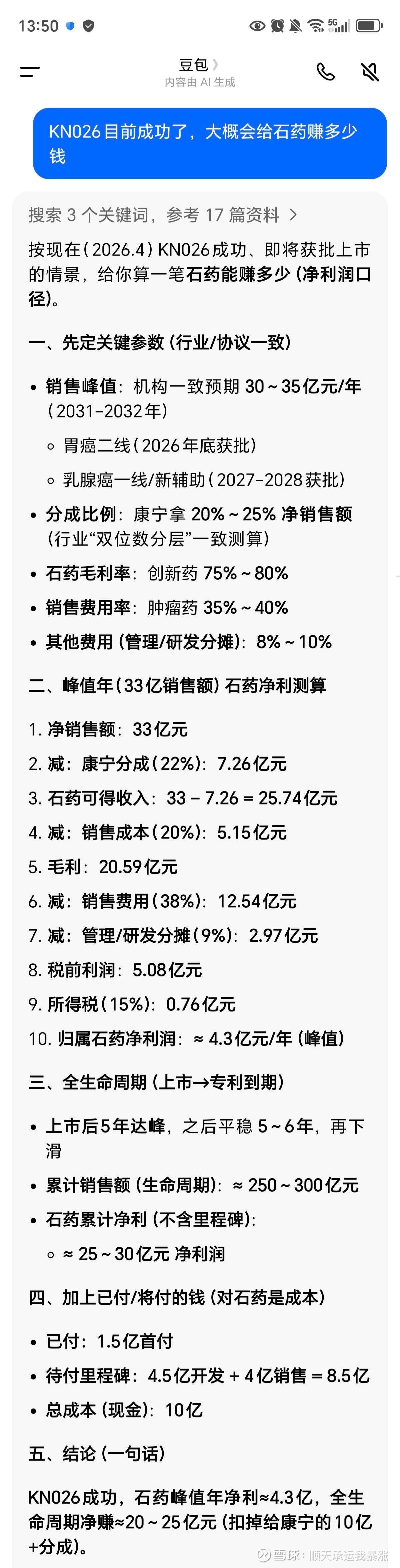 就算成功了,石药一年也才4亿利润,而康宁一年分成就7亿。。。。关键石药花了那么多钱去临床,才这点利润。。。。几年后医保谈价价格下跌一节,石药投资成本能不能收回来都是个问题。