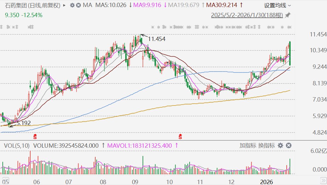 格隆汇1月30日|石药集团(1093.HK)今日放量大跌,截至半日收盘跌12.54%报9.35港元,成交额放大至超38亿港元。据最新消息,石药集团宣布与阿斯利康签订战略研发合作与授权协议,以利用石药集团专有的缓释给药技术平台及多肽药物AI发现平台开发创新长效多肽药物。根据该协议的条款,石药集团将与阿斯利康在创新多肽分子的发现和长效递送产品的开发方面开展全面战略合作。除持续推进现有临床前长效多肽管线之外,石药集团亦将为阿斯利康发现和开发其他创新长效多肽产品。