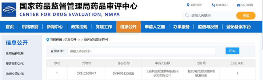 2026年1月29日,博腾生物助力石药集团自主研发的“SYS6055注射液”获得国家药品监督管理局(NMPA)临床试验默示许可,受理号:CXSL2500947。这是国内首款获批临床的in vivo CAR-T疗法,适应症为复发/难治性侵袭性B细胞淋巴瘤,博腾生物对此表示热烈祝贺!