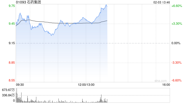 石药集团(01093)午后股价上涨6.34%,现报9.73港元,成交额12.25亿港元。