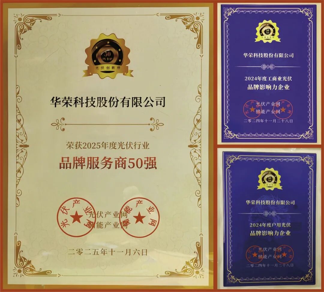 11月6日,华荣科技股份有限公司(股票代码:603855)在“2025 第十届光储创新大会”上斩获“2025 年度光伏行业品牌服务商50强”称号。此前公司已连续多次在该权威平台获誉,曾先后获评“2024年度户用光伏品牌影响力企业”、“2024 年度工商业光伏品牌影响力企业”等殊荣,彰显了华荣能源持续领先的行业地位。