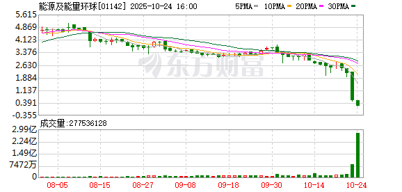10月24日,港股能源及能量环球股价闪崩,收盘跌逾60%。今年8月份,香港证监会曾点名能源及能量环球股权高度集中。