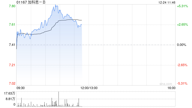 加科思-B(01167)盘中涨近5%,截至发稿,股价上涨3.10%,现报7.64港元,成交额1597.28万港元。