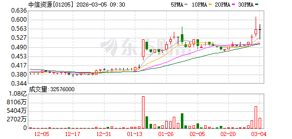 中信资源(01205)发布公告,公司的股份将于2026年3月5日上午九时正起短暂停止买卖。