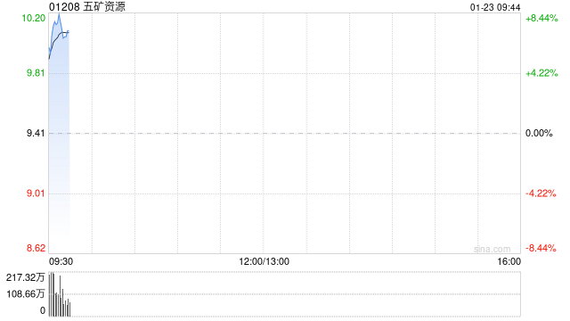 五矿资源(01208)早盘高开,截至发稿,股价上涨7.55%,现报10.12港元,成交额9624.314万港元。
