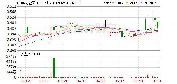 中国投融资(01226.HK)公告,于2021年5月31日,公司每股股份未经审核综合资产净值约为0.77港元。