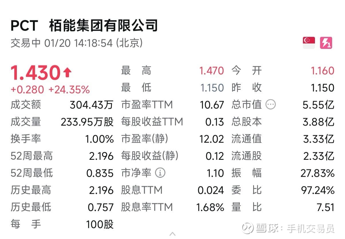 记录一下栢能集团转股新加坡交易所PCT,最后交易日结束收盘5.58港币