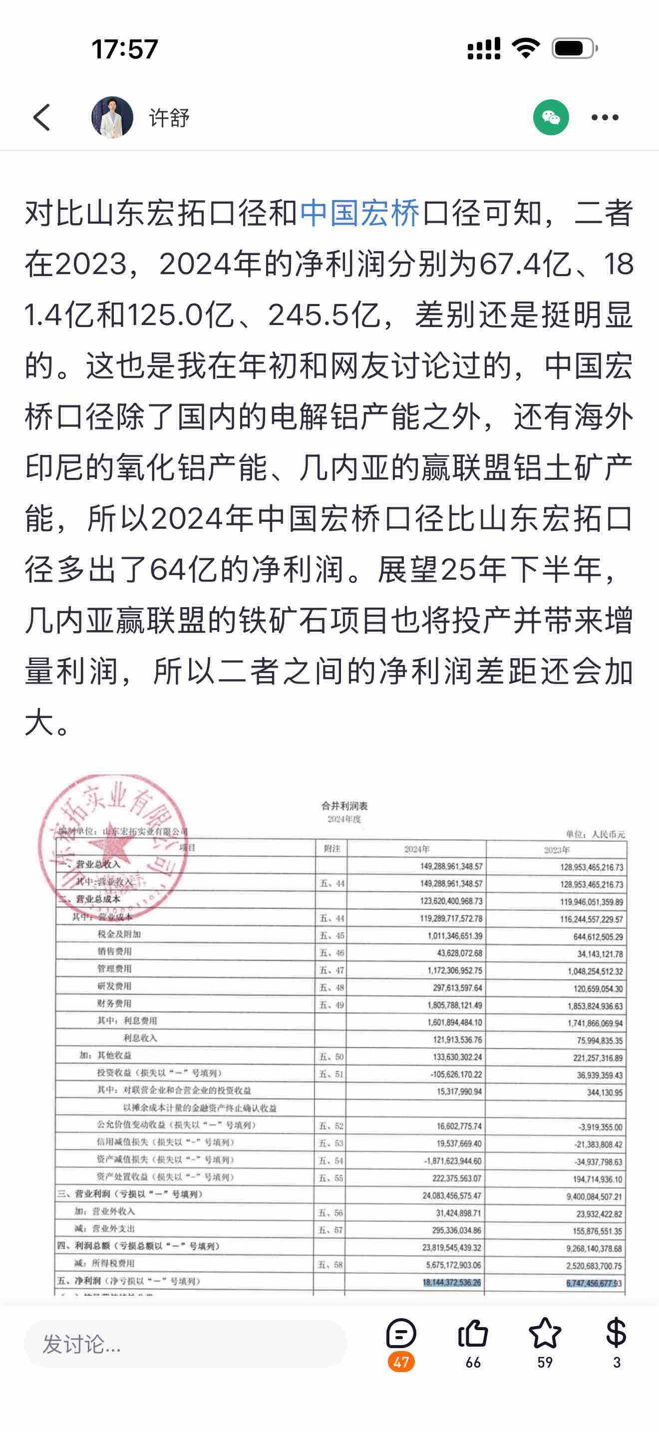 宏桥A今年的利润会不错,一个是云南产能继续爬坡,用在购电上的成本变低,虽然山东宏桥的电力成本不比云南高,但是卖给宏桥A是协议价,这个价格还是不低的,比云南高很多,会影响大几十亿的利润。