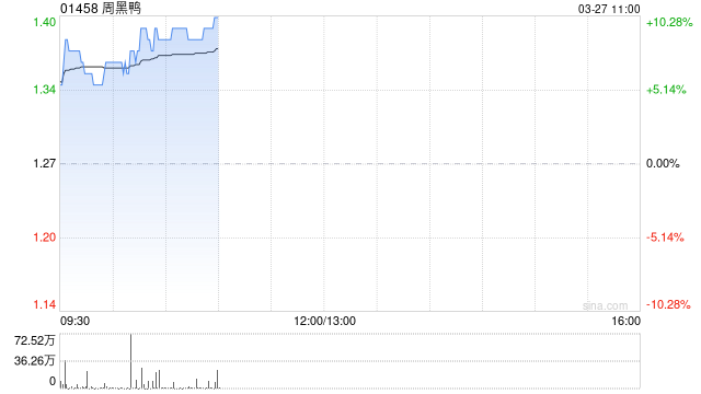 周黑鸭(01458)早盘涨超9%,截至发稿,股价上涨9.45%,现报1.39港元,成交额465.38万港元。