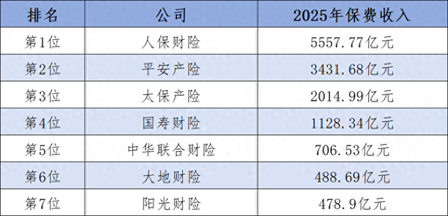 2025年保费收入排名