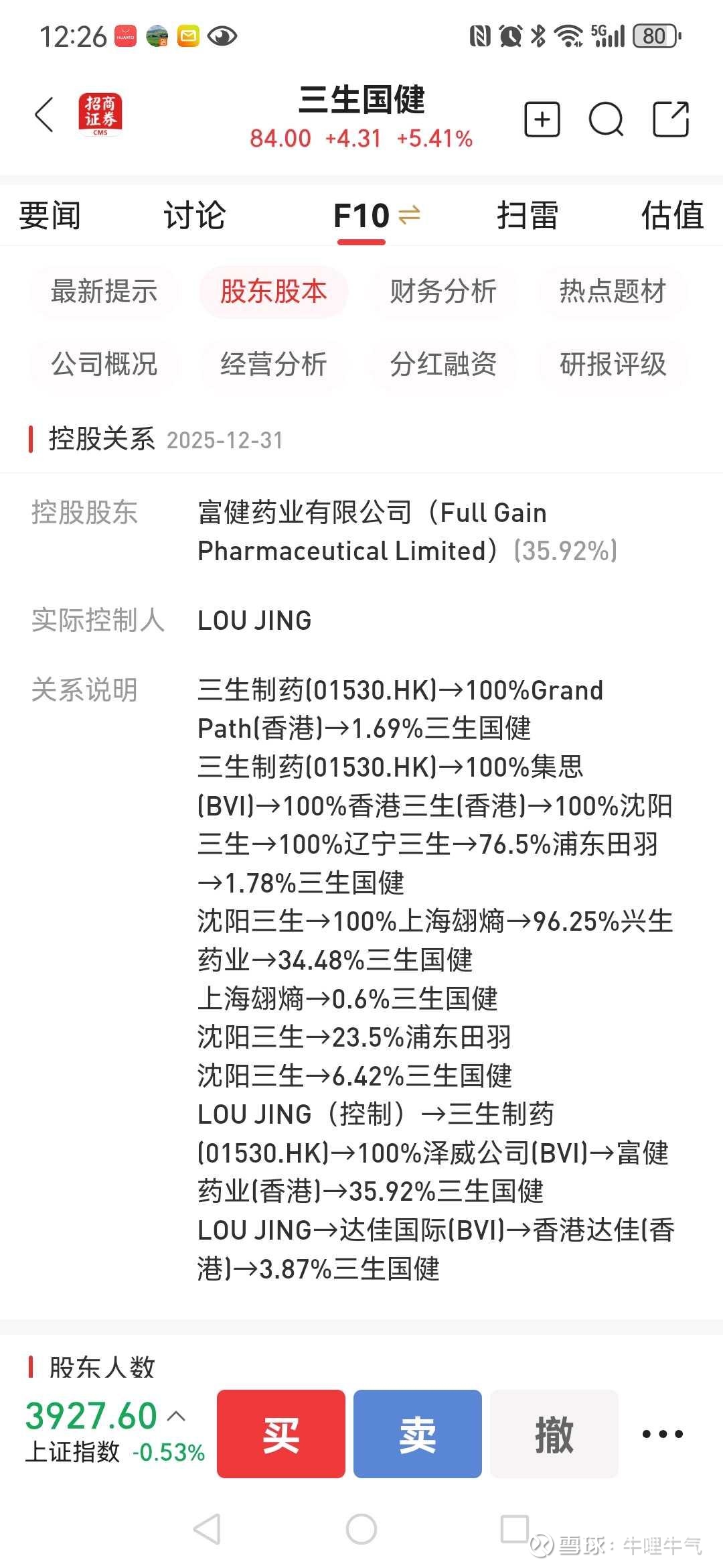 :从公开资料看三生制药只持有35%左右的三生国健,沈阳三生持有另外35%左右的三生国健