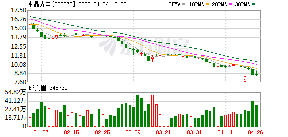 水晶光电(SZ 002273,收盘价:8.52元)4月26日晚间发布公告称,星星集团质押1280万股。截至本公告披露日,浙江水晶光电科技股份有限公司控股股东星星集团有限公司持有公司股份约1.24亿股,占公司总股本的8.9%。其所持有公司股份累计被质押的数量约为1.09亿股,占其持有公司股份总数的87.82%,占公司总股本的7.82%;控股股东星星集团及其一致行动人杭州深改哲新企业管理合伙企业(有限合伙)累计质押股份约1.09亿股,占其持股总数的55.12%,占公司总股本的7.82%。