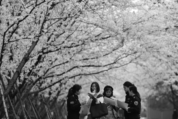 3月30日上午,嘉兴市公安局南湖区分局东栅派出所民警走进辖区雅迪工厂,借助厂区樱花盛开、游客集中的时机,将反诈宣传送到游客身边。