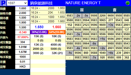 10月19日消息,纳泉能源科技将于明日在港交所上市,今日暗盘大跌17%,报1.65港元。公司发行6250万股,每股定价2.00港元,每手1000股。