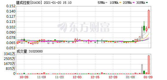原标题:《异动股》建成(01630)升40%,报0.14元