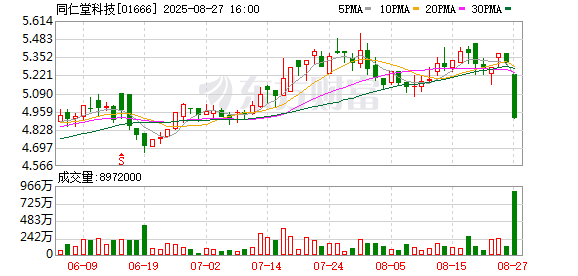 8月26日,同仁堂科技(01666)发布中期业绩公告,截至2025年6月30日止6个月,营业收入较2024年同期下降约7.69%,归母净利润较2024年同期下降约21.01%,每股收益为0.26元。董事会决定不派发中期股息。