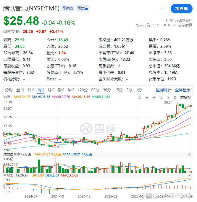 :技术上已经超买,只是情绪上不断有利好,腾讯音乐已经25pe了