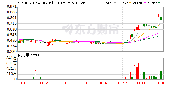 格隆汇11月18日丨HKE HOLDINGS(1726.HK)涨7.41%,报0.87港元,总市值8.35亿港元。