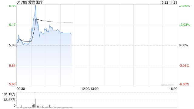 爱康医疗(01789)盘中涨超6%,截至发稿,股价上涨1.84%,现报6.10港元,成交额4532.73万港元。