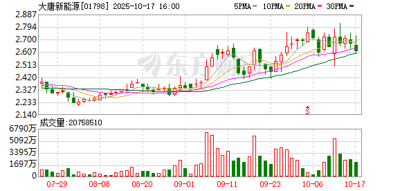 10月17日,大唐新能源(01798)发布公告,根据初步统计,2025年9月公司及其附属公司按合并报表口径完成发电量237万兆瓦时,较2024年同比下降0.25%。其中,风电发电量为186万兆瓦时,较2024年同比下降11.42%;光伏发电量为51万兆瓦时,较2024年同比增加84.91%。