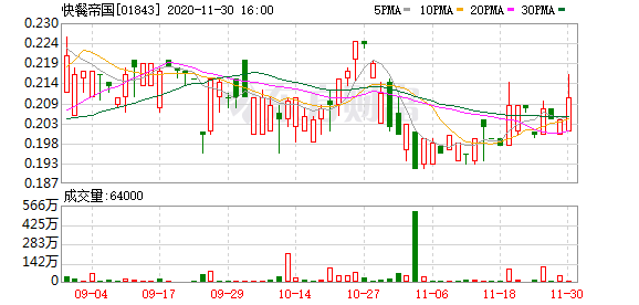 快餐帝国(01843)公布,郭兆文黎剎骑士勋贤已辞任该公司公司秘书,自2020年11月30日起生效;因此于同日,他不再担任根据联交所证券上市规则第3.05条项下的该公司授权代表职务。