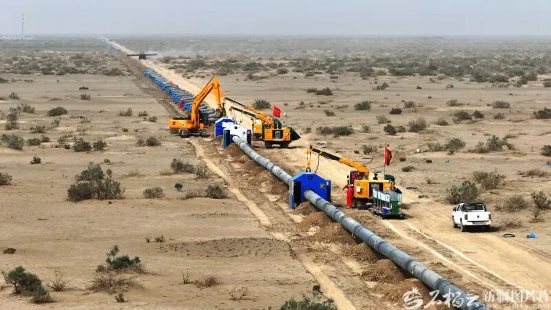 气化南疆天然气管道工程穿越戈壁。图片由塔里木油田提供这条沿天山南麓铺就的“气脉”,是南北疆天然气利民管道扩建工程的重要组成部分,也是塔里木油田以清洁能源助力新疆高质量发展的重大民生工程。作为气化南疆天然气管道工程第一批项目中工程量最大、里程最长的管道,英三线于今年3月10日打火开焊,东起阿克苏地区英买力输气站,西至喀什地区三岔分输站,沿途新建11座阀室和分输站,扩建3座天然气站场,将克拉、克深等大中型气田和沿途县市紧紧连在一起。