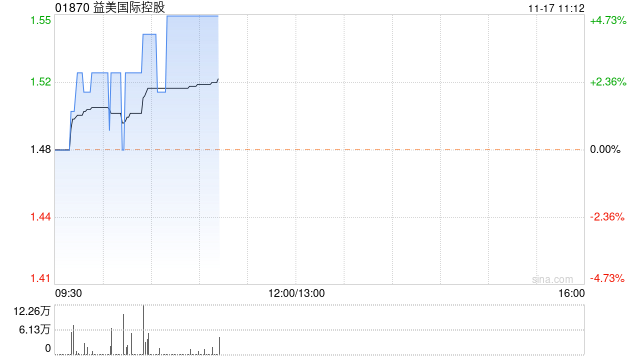 益美国际控股(01870)早盘持续升高,上涨4.73%,现报1.55港元,成交额121.89万港元。