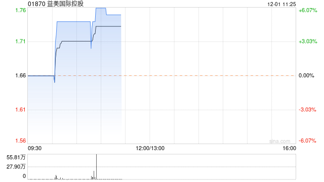 益美国际控股(01870)继昨日收涨近4%后,今日再涨5.42%,现报1.75港元,股价续创今年新高,10月以来大涨66%,成交额235.32万港元。