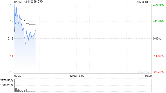 益美国际控股(01870)复牌高开,该股昨日午后突然放量暴跌,股价最低触及0.115港元,较前一日收盘价下跌92%。截至发稿,股价上涨23.72%,现报0.193港元,成交额1450.84万港元。