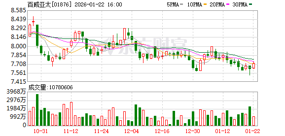 摩根大通则将百威亚太目标价由8.5港元下调至7.9港元。