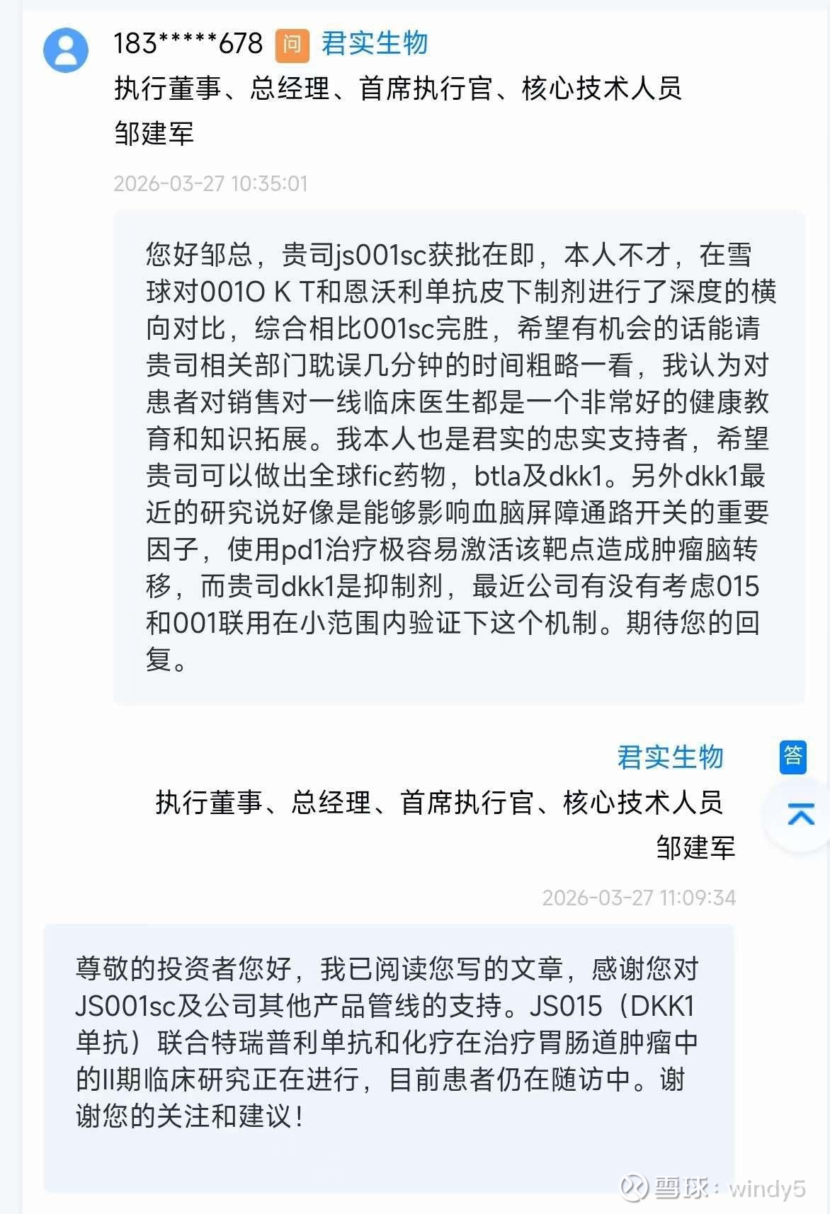 : 泪目 公司真的认真倾听了我一个普通投资者的声音 我将继续以自己的方式守护上市公司 带来更多不偏不倚的医学科普 也希望贵司发展的越来越好,中国创新药越来越好!