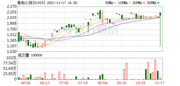 泰和小贷(01915)跌29.81%,报1.46元,跌穿250天线(1.864元),最低价1.19元,创1个月新低,最高价2.2元,创1个月新高;成交6.2万股,成交金额12.57万元;主动买沽比率91:9,资金净主动买入10.19万元。现时最大净被动买入券商为华盛资本证券,金额7933.33元,加权平均成交价1.19元;现时最大净被动卖出券商为盈透证券香港,金额4.4万元,加权平均成交价2.2元。