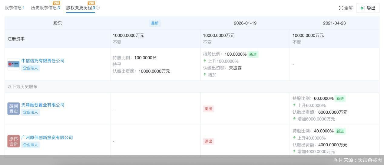 1月25日,北京商报记者获悉,融创中国与中信集团合作重启的天津梅江地块,其项目开发主体“天津融创致成”已于2026年1月19日完成股权变更。原股东全部退出,中信信托以全资股东身份入场,实现对项目公司的完全控制。这标志着双方合作进入实质落地阶段。